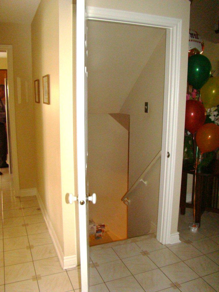 Main floor entrance to basement, to be converted to open concept, with a new spiral staircase installation |