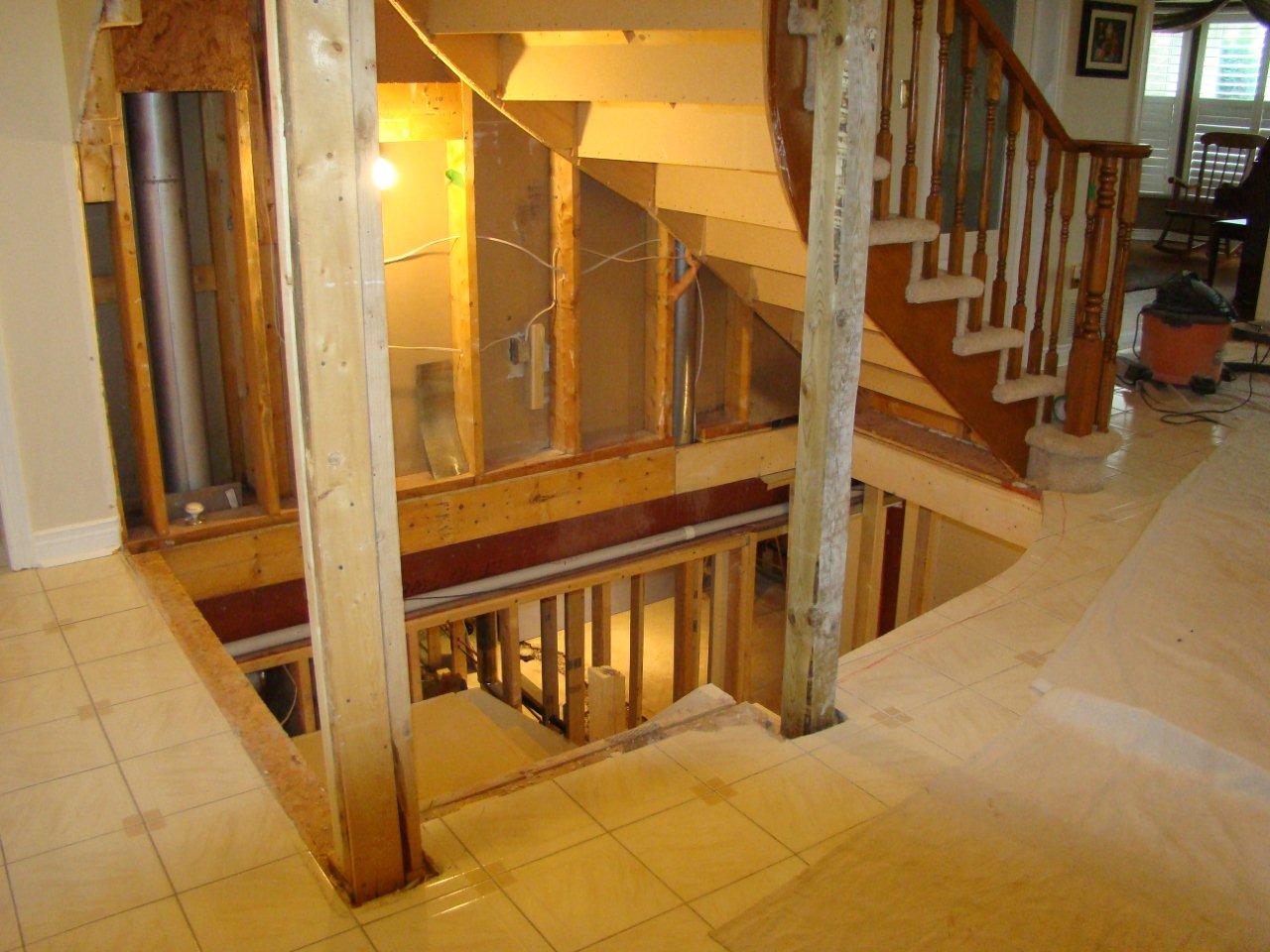 Reno process, making opening for new Spiral staircase and picket/railing system |