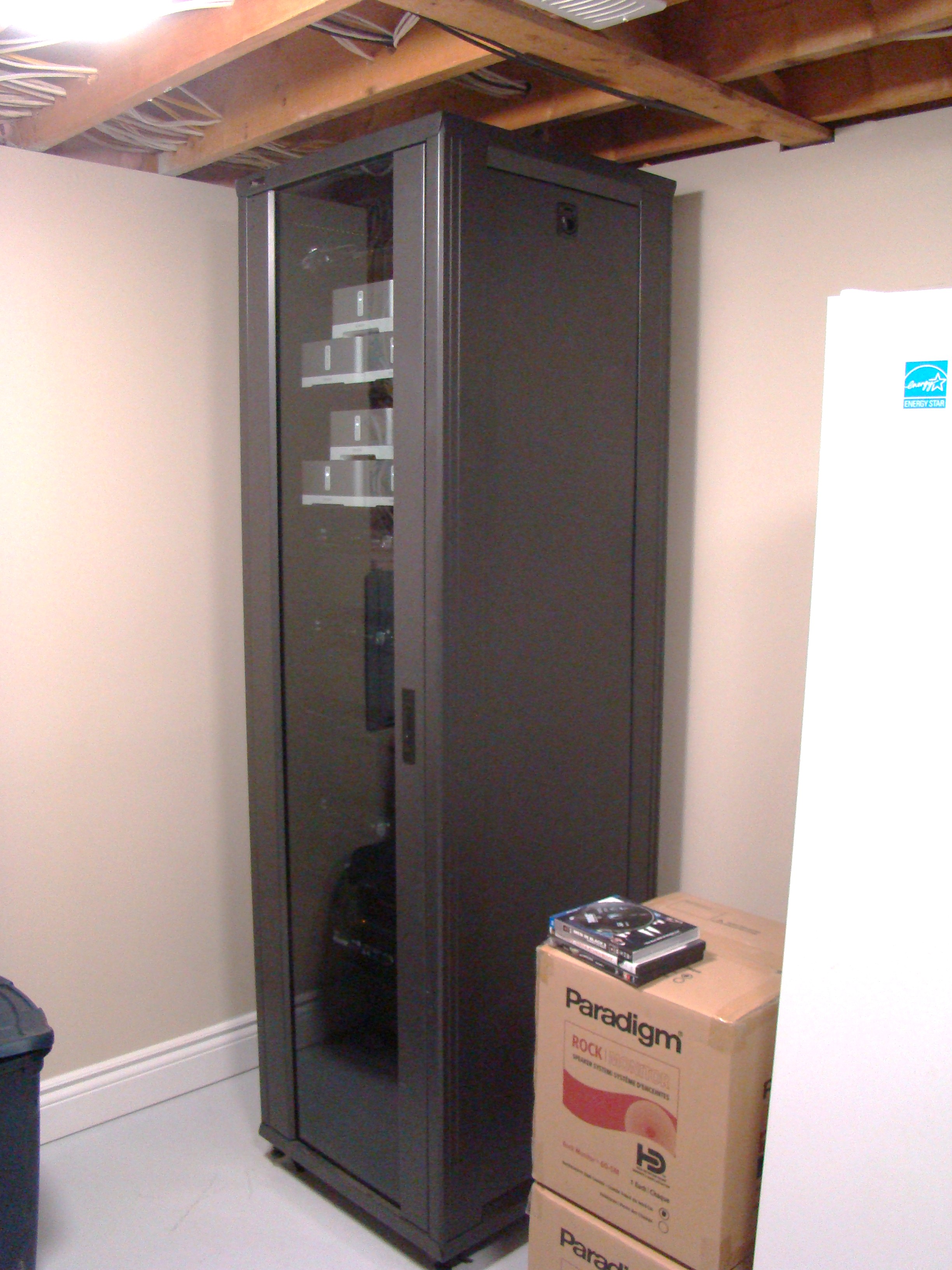 7 ft. Audio Rack located in utility room houses Audio Surround Sound System Ampifier and all Audio Amplifiers and Televisions, driving zoned speakers throughout the basement and the rest of the house including the backyard pool area. Each amplifier can be control via internet online using Smart Phones and Tablets.